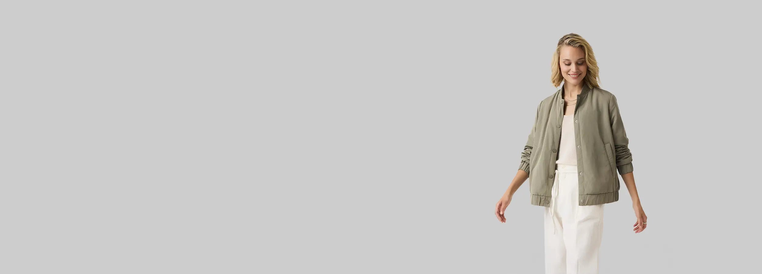 In unserer WOMAN Outerwear Kollektion findest du Westen und Jacken, die Stil, Komfort und Funktion perfekt miteinander verbinden. Ob für den Stadtbummel, sommerliche Outdoor Momente oder den Weg ins Büro, hier entdeckst du hochwertige, vielseitige und nachhaltig produzierte Damen Outerwear, die dich durch Frühling und Sommer stilvoll begleitet.